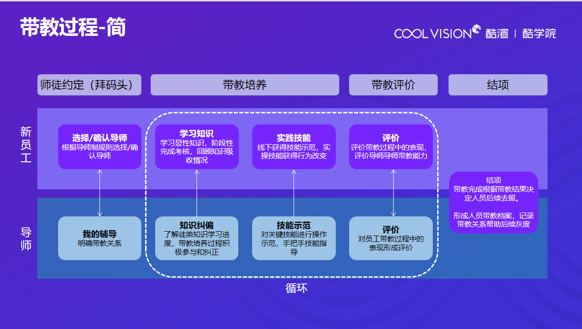 收到学习项目--选择导师--接受辅导(线上+线下)--学习线上内容--评价学员、导师带教表现