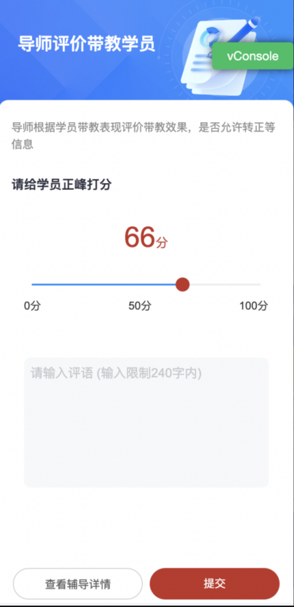 系统目前支持学员自评、学员对导师评价及导师对学员评价三种评价关系,管理员可以选择评分形式(满分100分)或问卷方式进行评价调研。