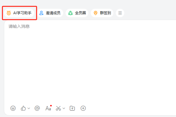 保存成功后,AI学习助手即可在应用快捷栏中展示,群成员点击即可直接访问AI学习助手
