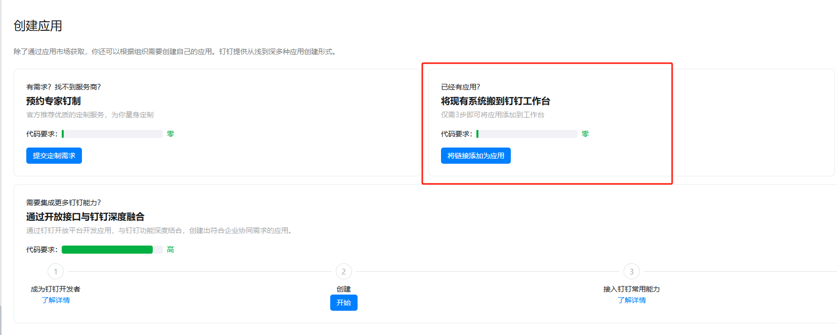 第二步:在应用搭建页面中,选择“将链接添加为应用”