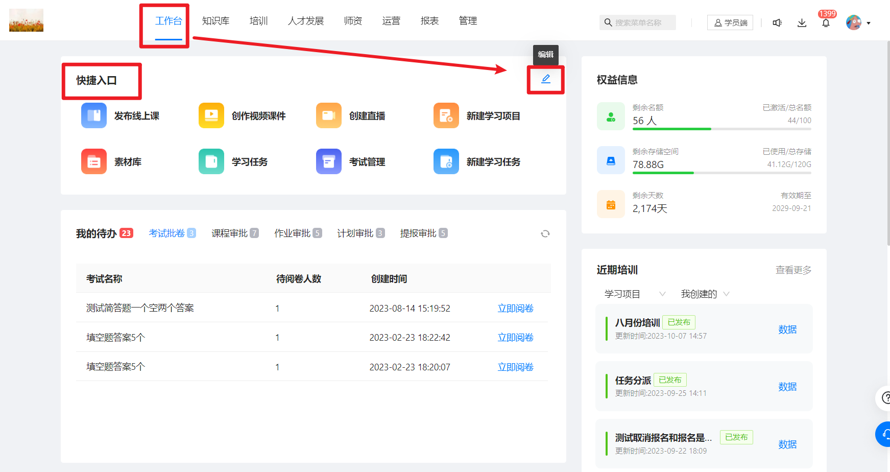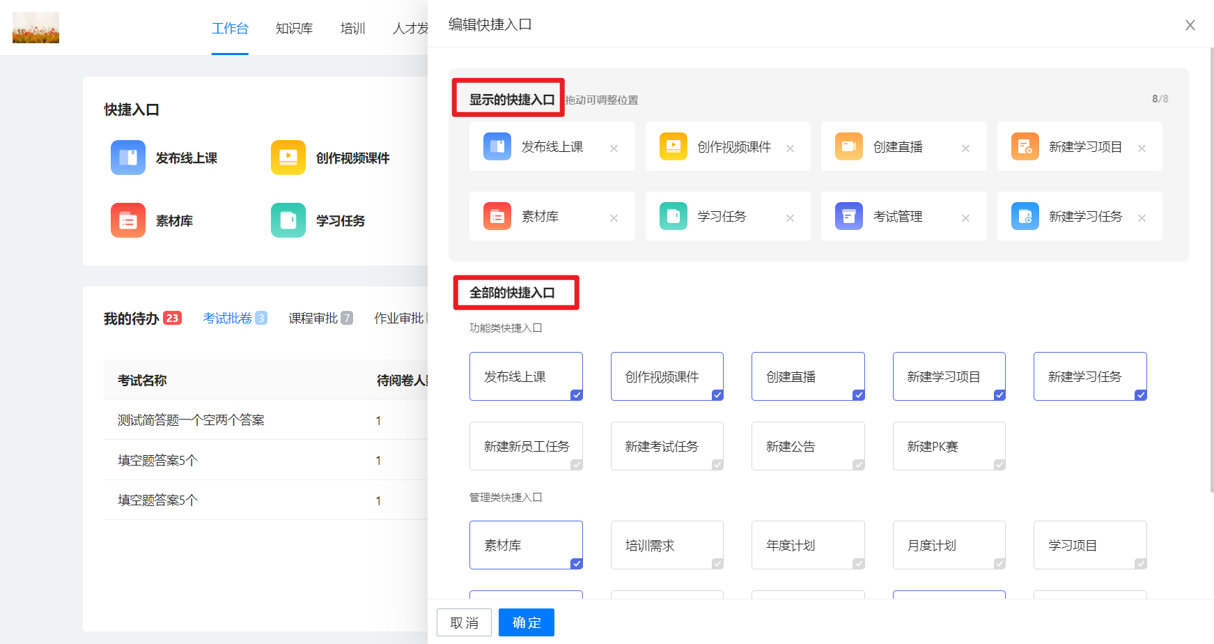 工作台快捷入口内容如何调整